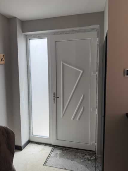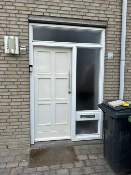 Er is gekozen voor een nieuwe voordeur en achterdeur die goed aansluiten bij de vernieuwde uitstraling van de woning. Om extra ventilatie en een aangenamer binnenklimaat te creëren, is aan de voorzijde een kozijn geplaatst dat volledig is voorzien van ventilatieroosters. Het resultaat is een woning met een frisse uitstraling, meer comfort en een nette, uniforme afwerking
